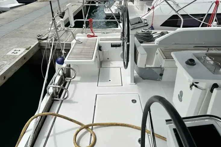 The spacious cockpit, many relaxation and sun bathing areas, as well as an aft swim platform, promise true comfort.