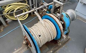 Trawl winch and pot hauler for fisheries and sampling operations.