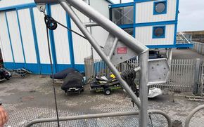'A' frame with hydraulic rams - lifting 1 ton overboard