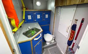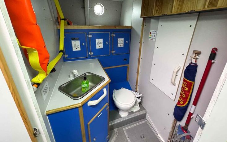 Heads: Marine toilet and washbasin.
