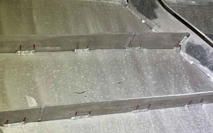 Welded plate construction with integral frames and bulkheads.