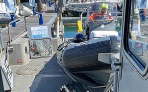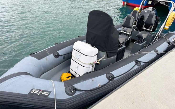 Zodiac Mil-Pro 5.4 m SR-5.4 “SeaRider” daughter craft fitted aft.