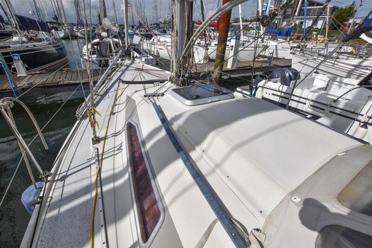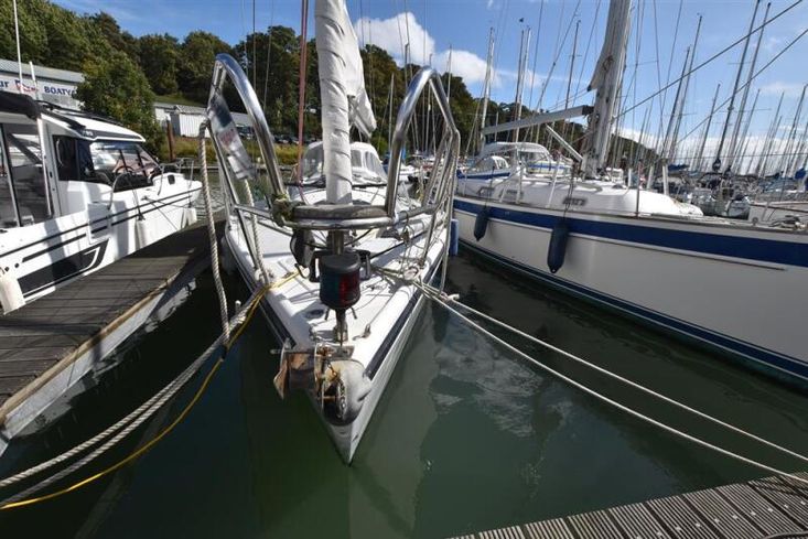 Built by Dehler Yachts in 1989 to a design by EG van de Stadt. Off-white GRP hull with style stripes. Rubbing strake. White GRP superstructure with painted non-slip to deck. Cast iron fin keel. Spade hung rudder. Tiller steering. Aft self-draining cockpit. Last surveyed in 2021 with recommendations carried out. Galvanised cradle available by separate negotiation.