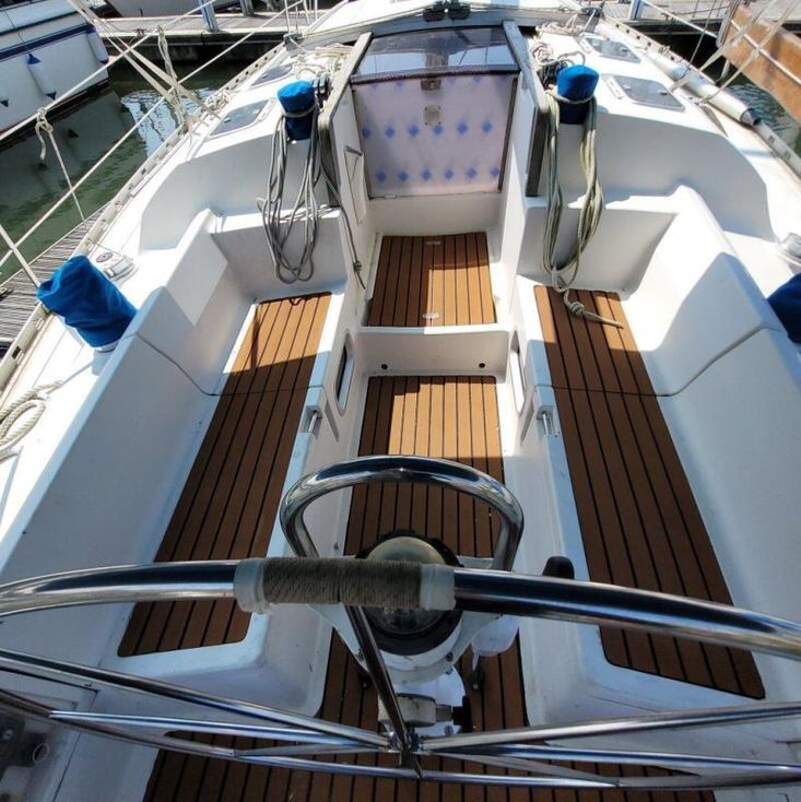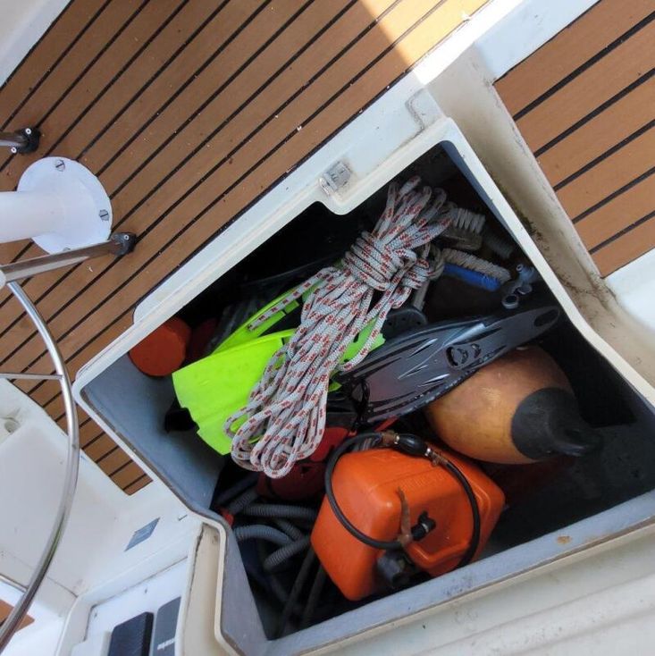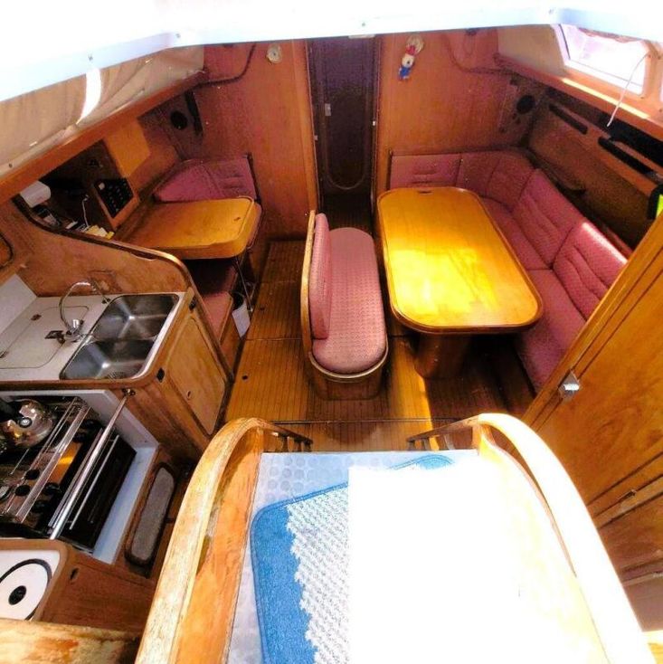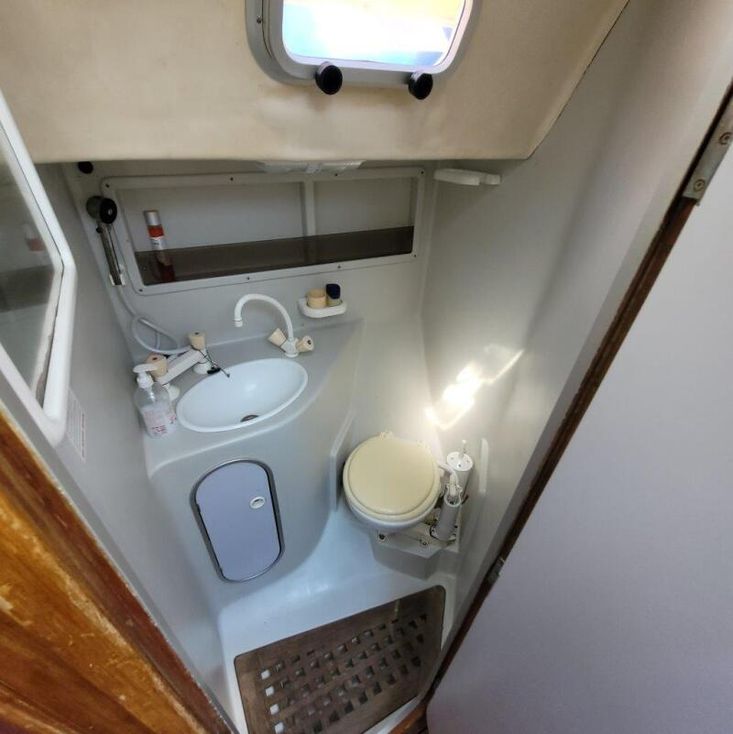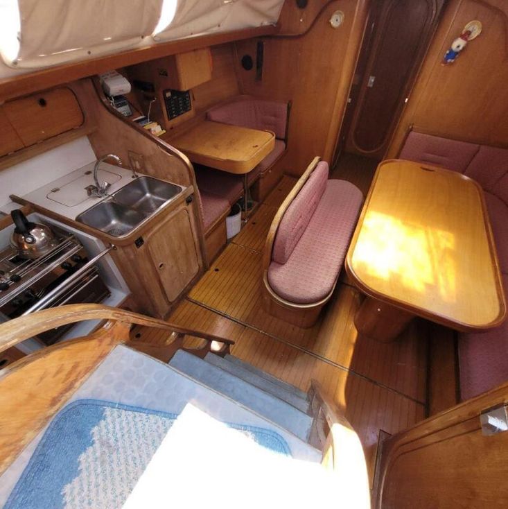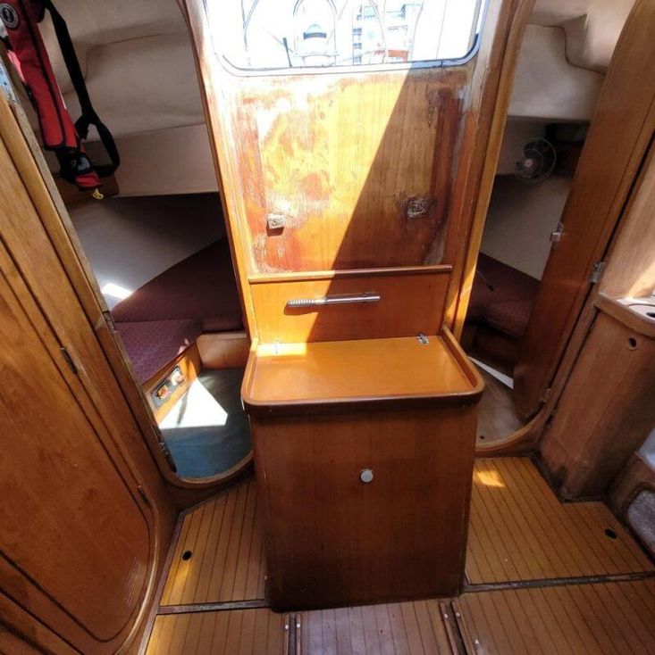 2019 Headliners repaired, two heads, four cabins, cockpit door/companionway replaced and varnished, new shower mount at stern varnished, "Ambrosia" wooden board sanded and re-varnished